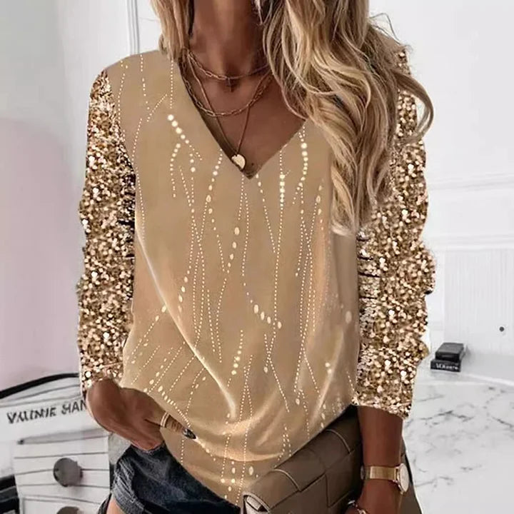 ✅Stilvolles Gestaltung: Das Talitha Langarmshirt mit V-Ausschnitt besticht durch sein modernes und elegantes Gestaltung mit glitzernden Ärmeln, die jedem Ausstattung einen Hauch von Glitzer verleihen. Durch seine schicke Ästhetik eignet es sich für legere Ausgänge, Abendveranstaltungen oder festliche Anlässe.