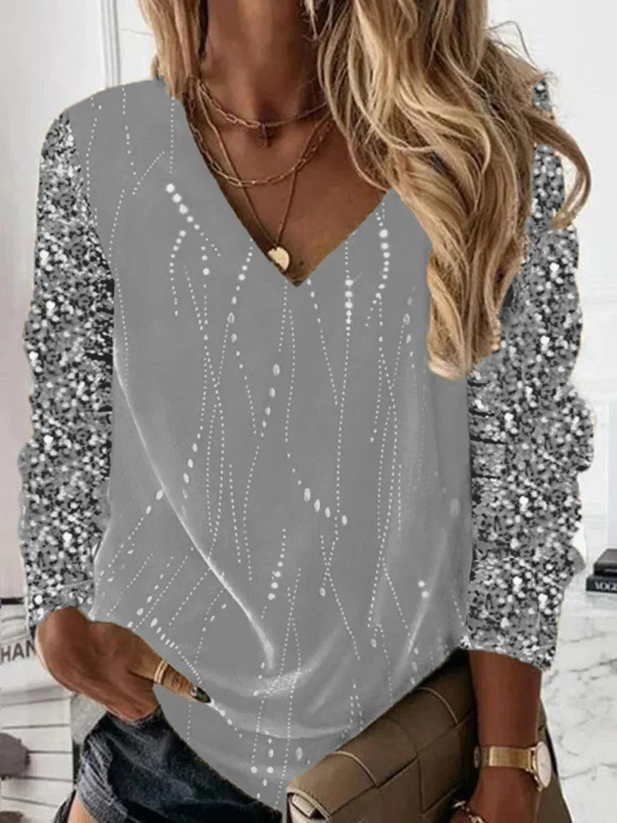 ✅Vielseitiges Styling: Der V-Ausschnitt und die Glitzer-Akzente machen es einfach, dieses Top mit Hosen, Röcken oder Hosen zu kombinieren. Es ist ein Grundelement der Garderobe, das sich nahtlos von der Tages- in die Abendgarderobe überführen lässt.