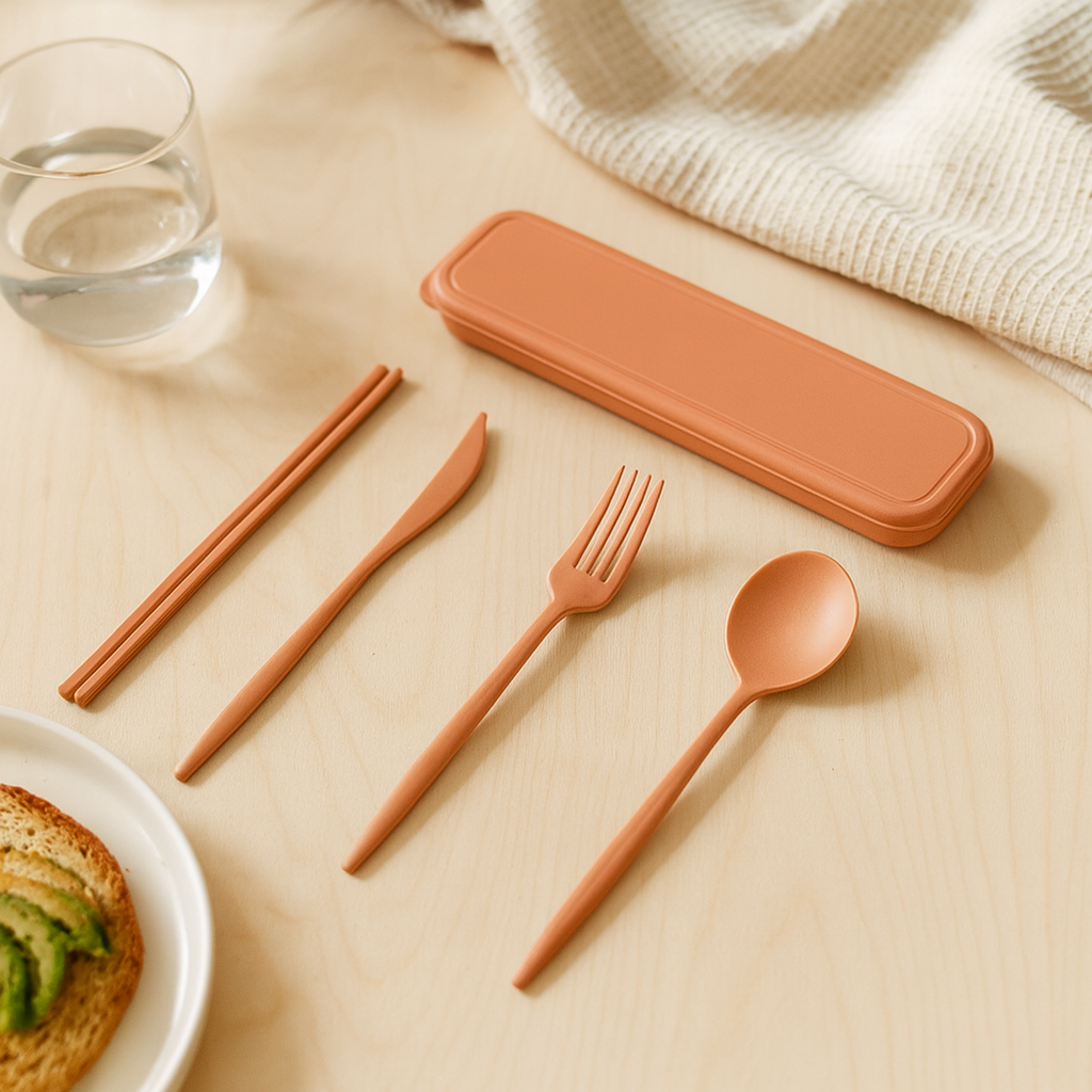 Das TerraGo | Reiseutensilien-Set ist auf Portabilität und Bequemlichkeit ausgelegt. Vergiss Einweg-Besteck – dieses wiederverwendbare Set hält dich organisiert, umweltfreundlich und sorgt für ein vollständiges Esserlebnis unterwegs.