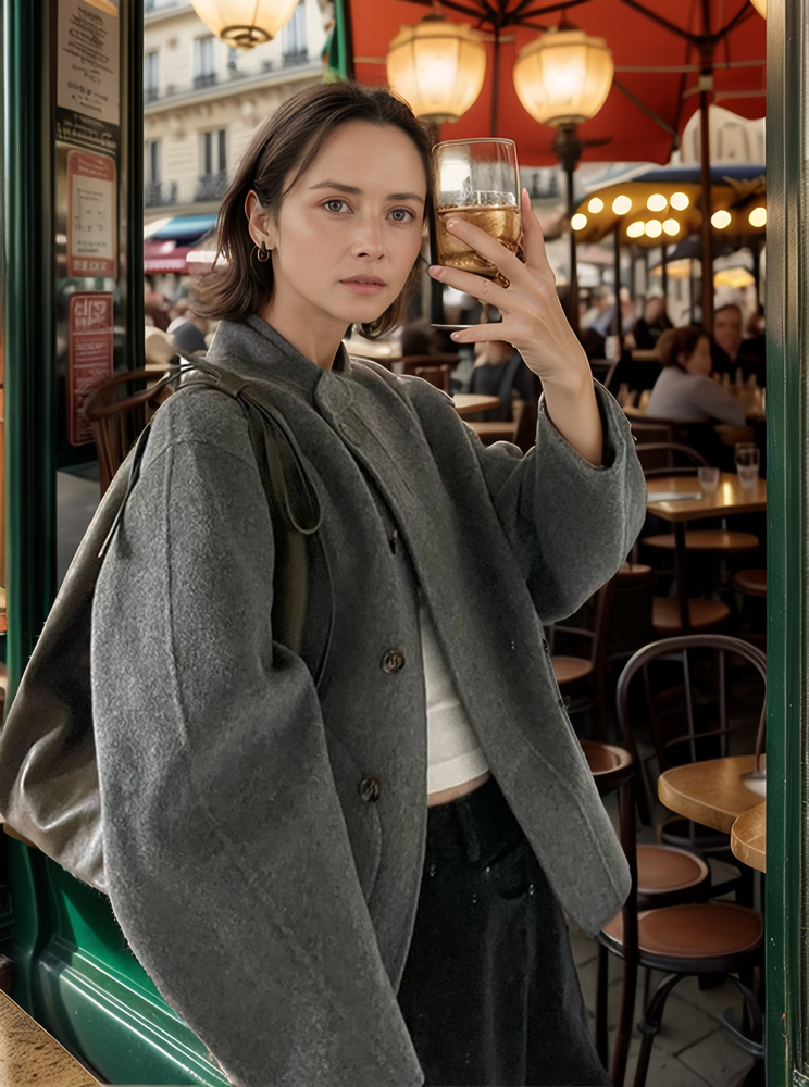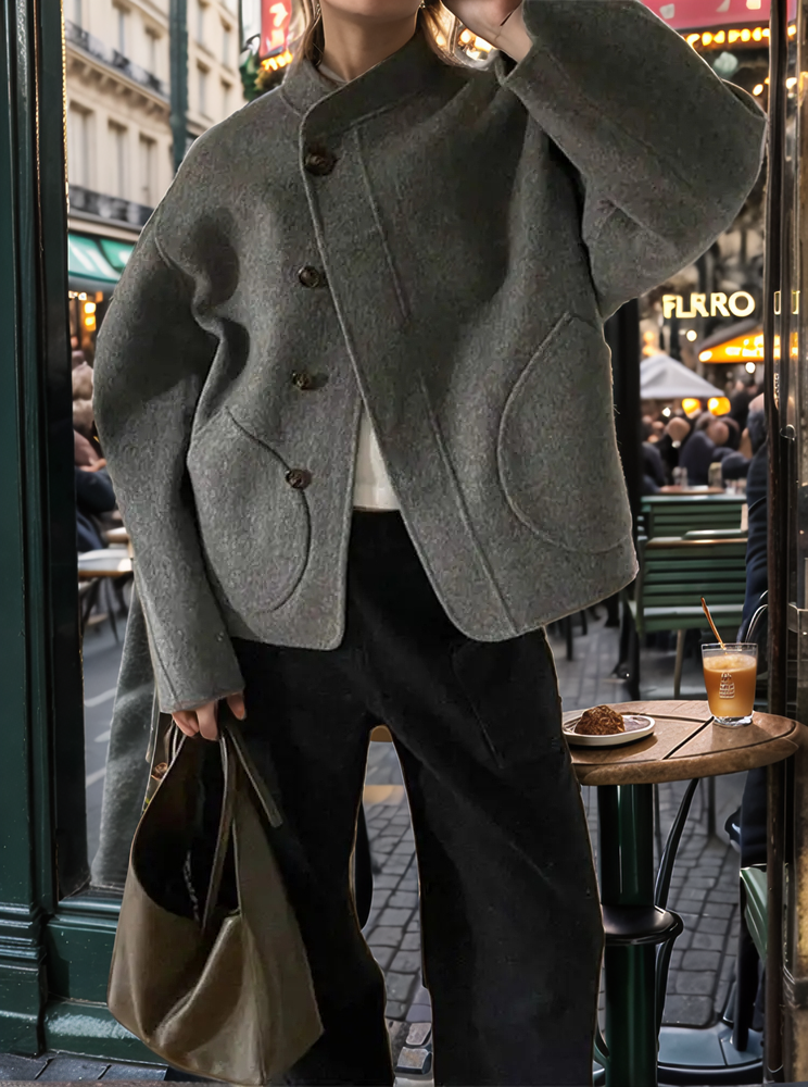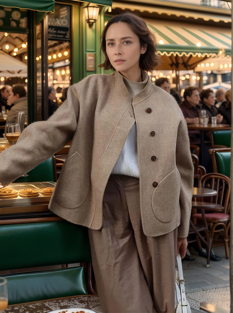 Tina | Lässiger einreihiger Wollmantel mit Stehkragen