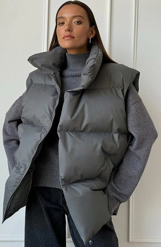 Wattierte Weste mit Stehkragen