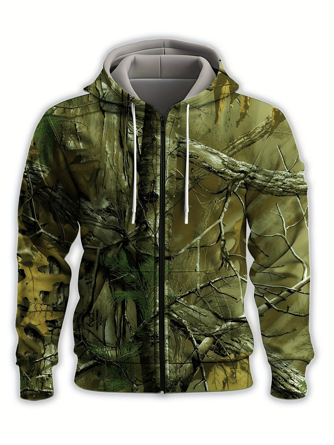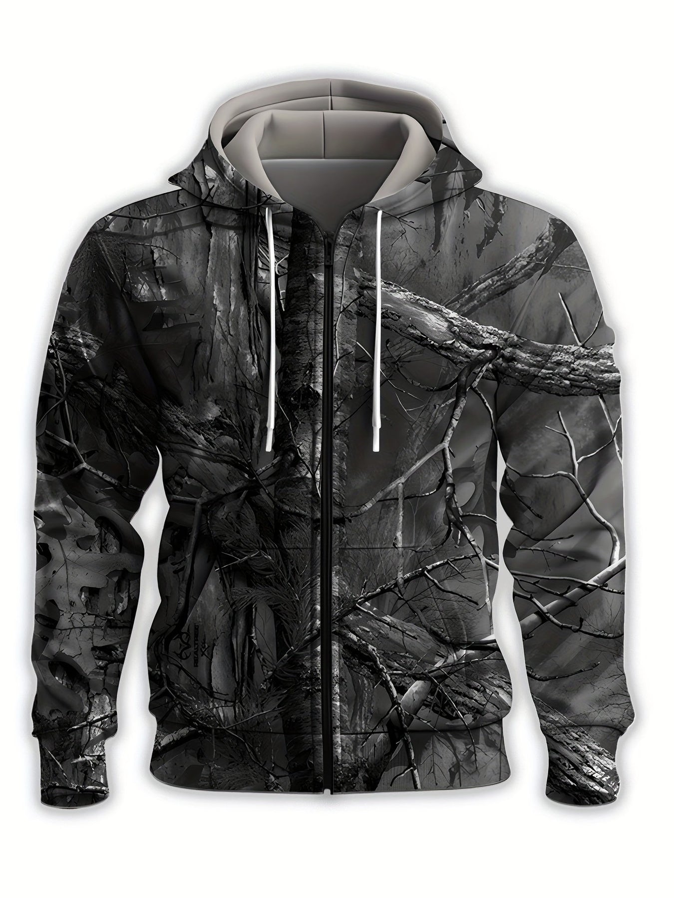 Kapuzenpullover mit Reißverschluss und auffälligem Waldast-Entwurf für Naturliebhaber!