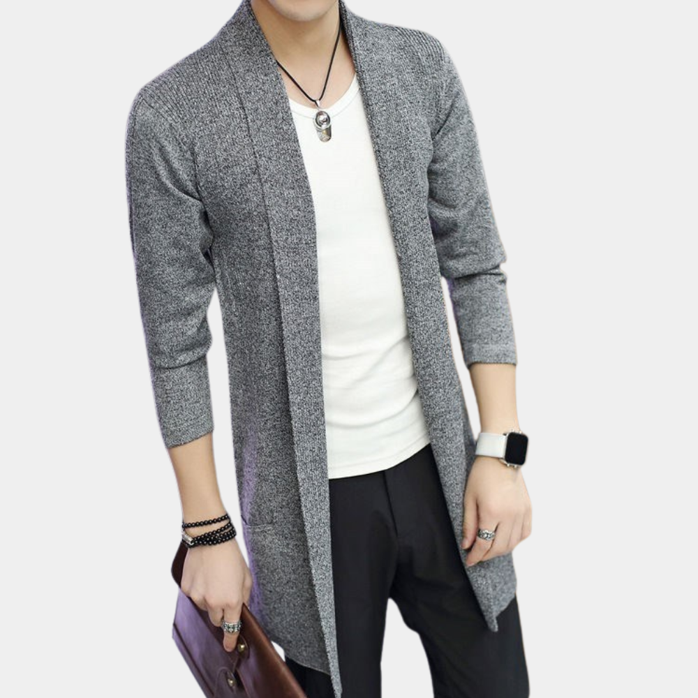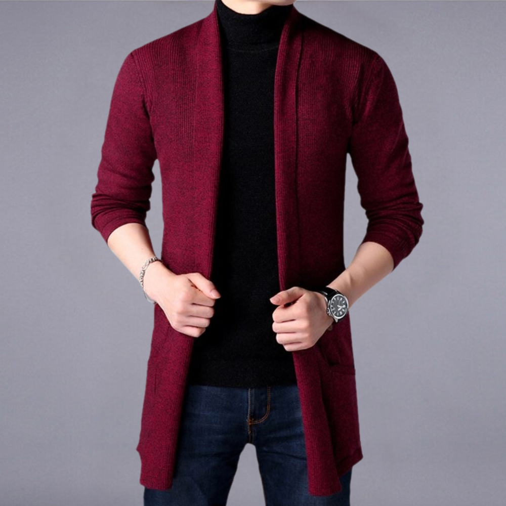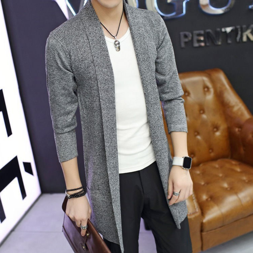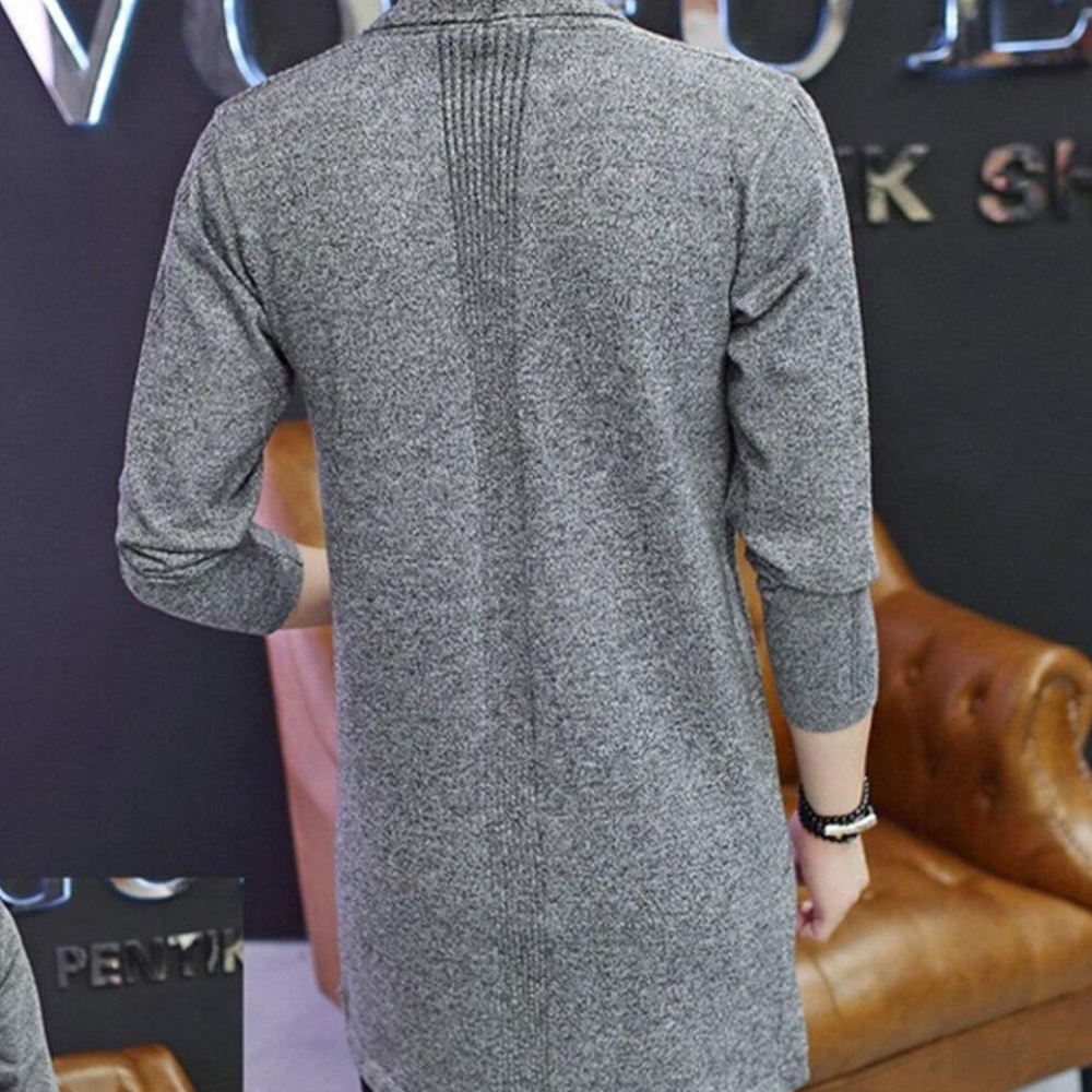 Schau dir diese klassische, aber moderne Strickjacke für Männer an, die perfekt zum Überziehen über ein Hemd oder als leichte Jacke solo getragen werden kann. Der taillierte Schnitt passt nahtlos zu engen Jeans und verleiht dir einen stilvollen Vorteil, egal ob du dich für Loafers oder Sneakers entscheidest.