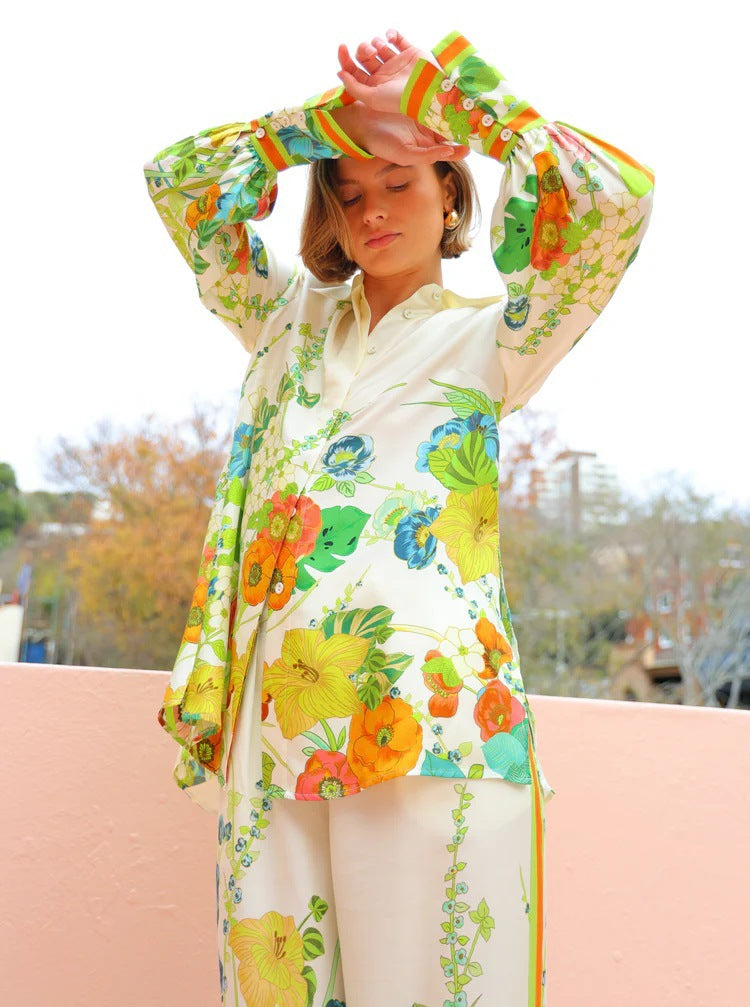 Lebendiger Blumendruck: Dieses zweiteilige Set überzeugt mit seinem lebhaften Blumenmuster und verleiht jedem Anlass Farbe und Eleganz.